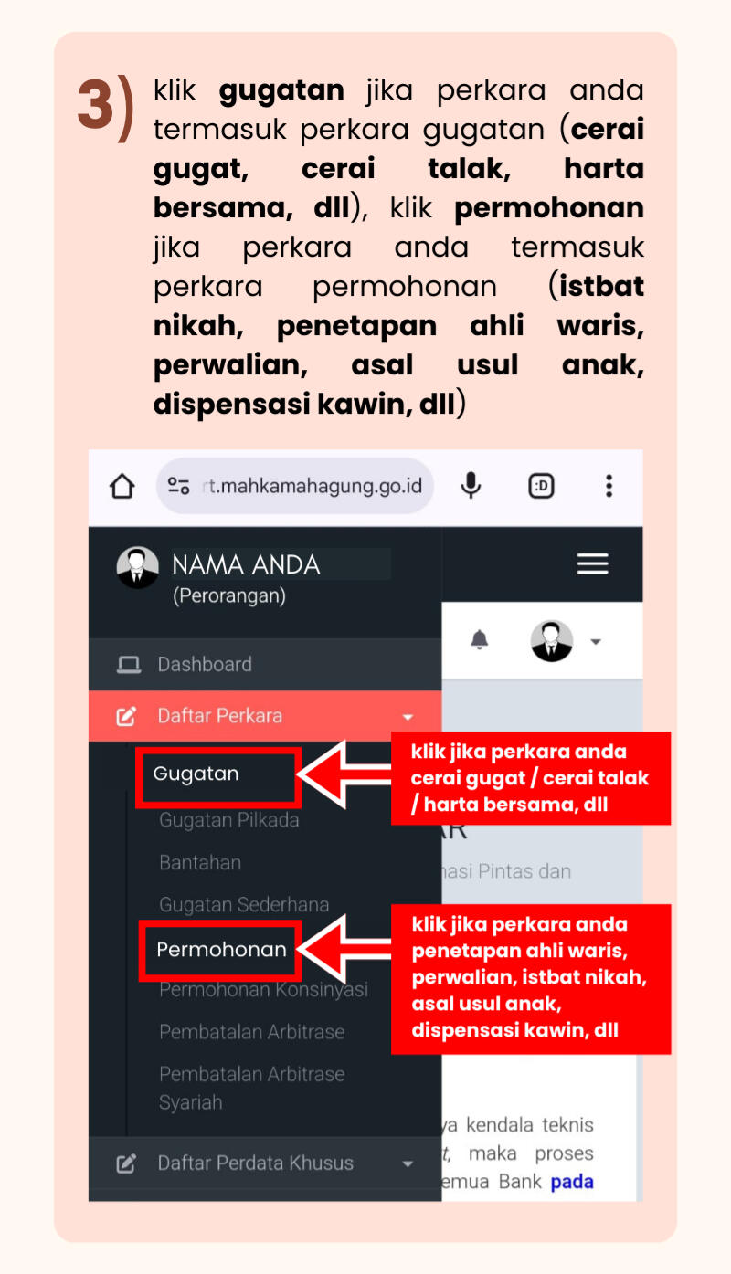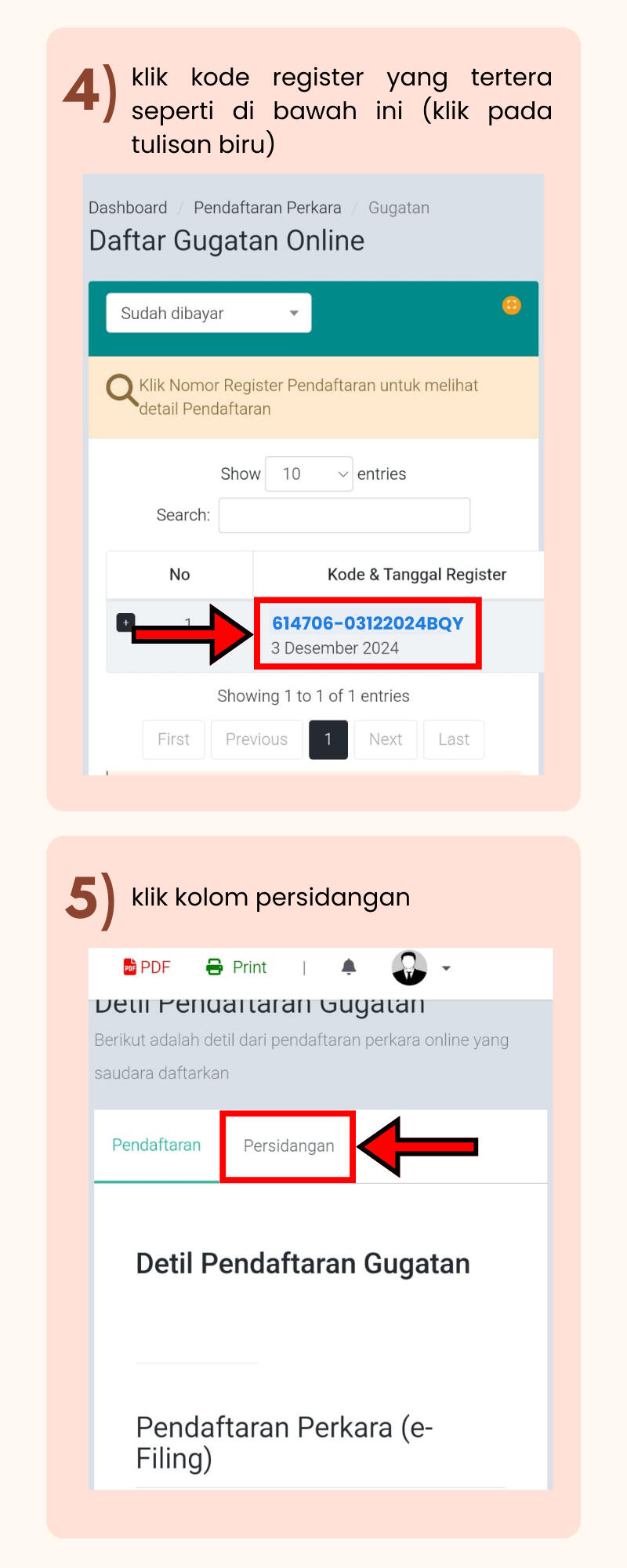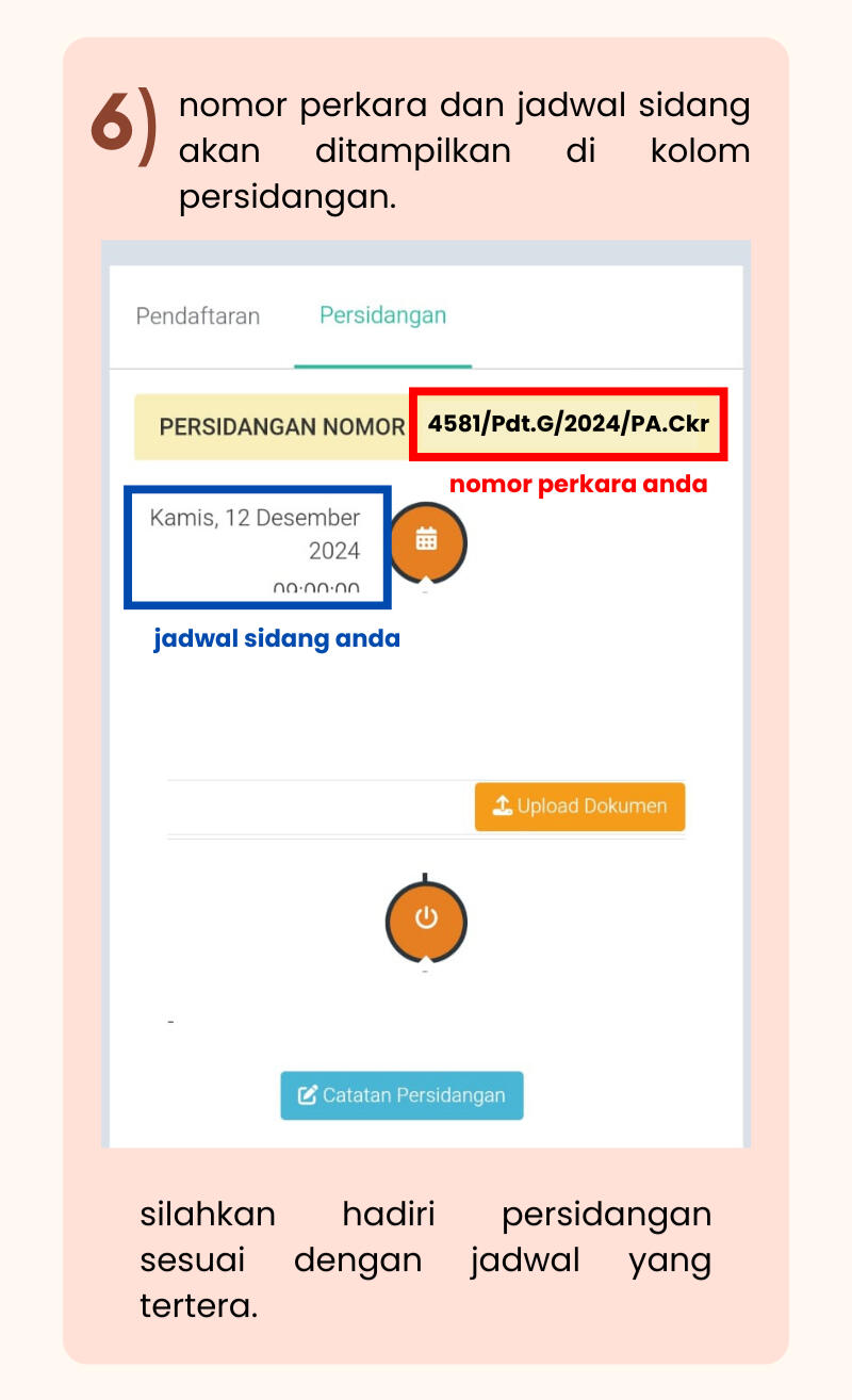 * ) JIKA KOLOM PERSIDANGAN BELUM MUNCUL, SILAHKAN CEK KEMBALI 2-3 HARI SETELAH PENDAFTARAN.