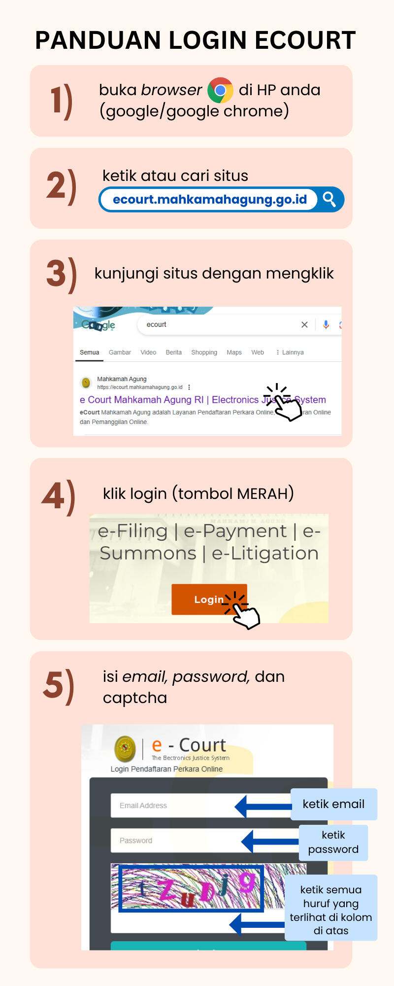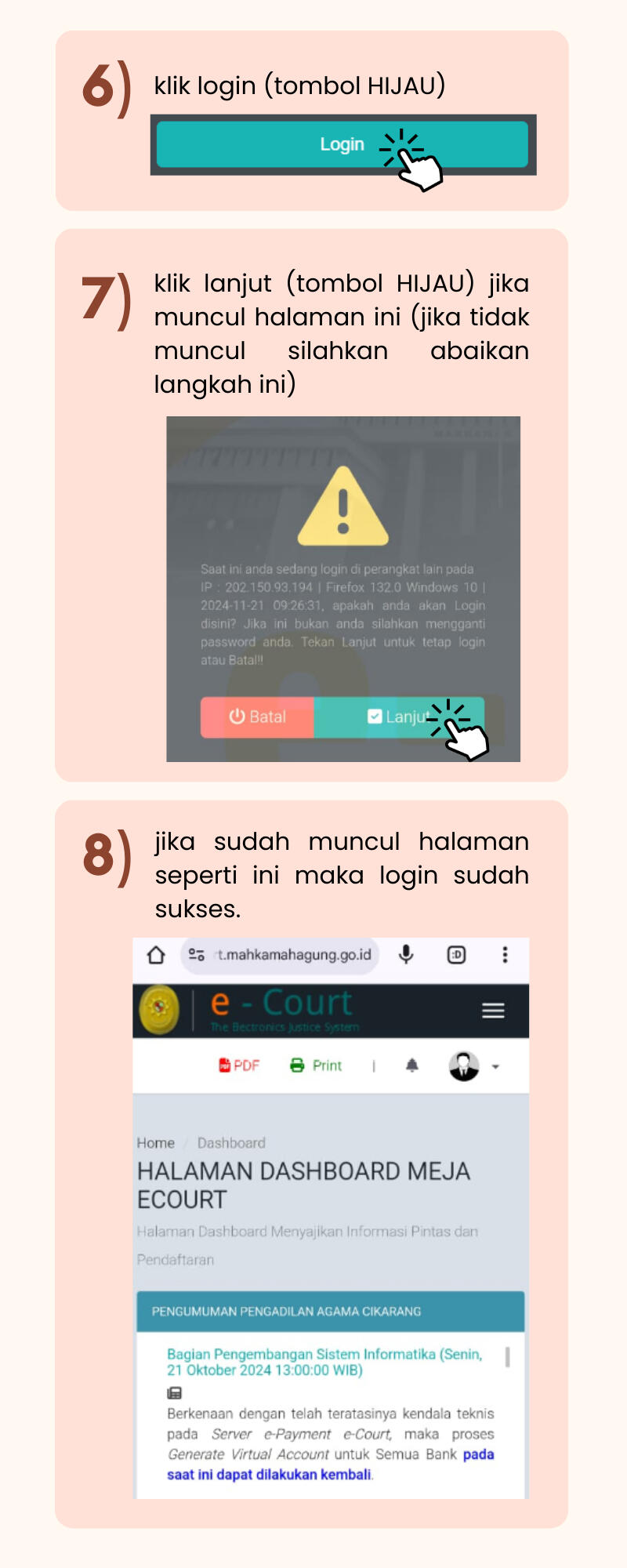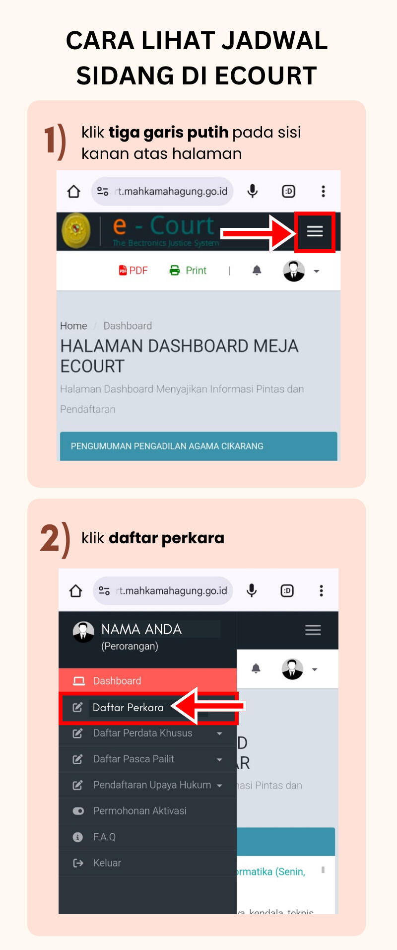 * ) JIKA KOLOM PERSIDANGAN BELUM MUNCUL, SILAHKAN CEK KEMBALI 2-3 HARI SETELAH PENDAFTARAN.